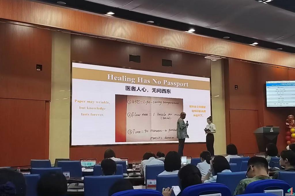 为全面提升护理人员医学英语应用能力与国际交流水平,医院护理处临床护理学教研室于9月10日下午在国际学术会议厅成功举办首届护理人员临床医学英语竞赛。院处领导、外训承训科室护士长、教学组长、外训带教教员、教学骨干及外训大队学员等300余人出席,活动现场座无虚席,赛事氛围热烈。