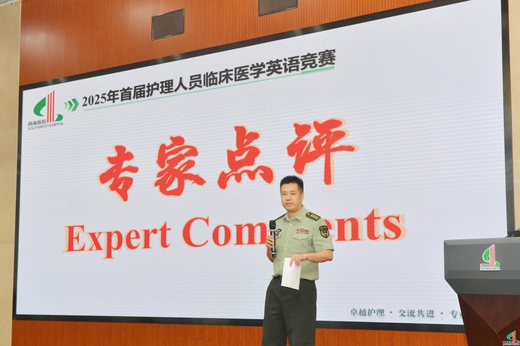在专家点评环节,重庆交通大学国际学院宁可主任与医院肝胆外科陈志宇副主任充分肯定了此次活动的组织工作,以及选手的专业素养与创新表达,并鼓励护理人员以语言能力赋能专业实践,以人文智慧传递医疗温度,在守护患者健康、推动国际化交流的征程中续写新篇章。