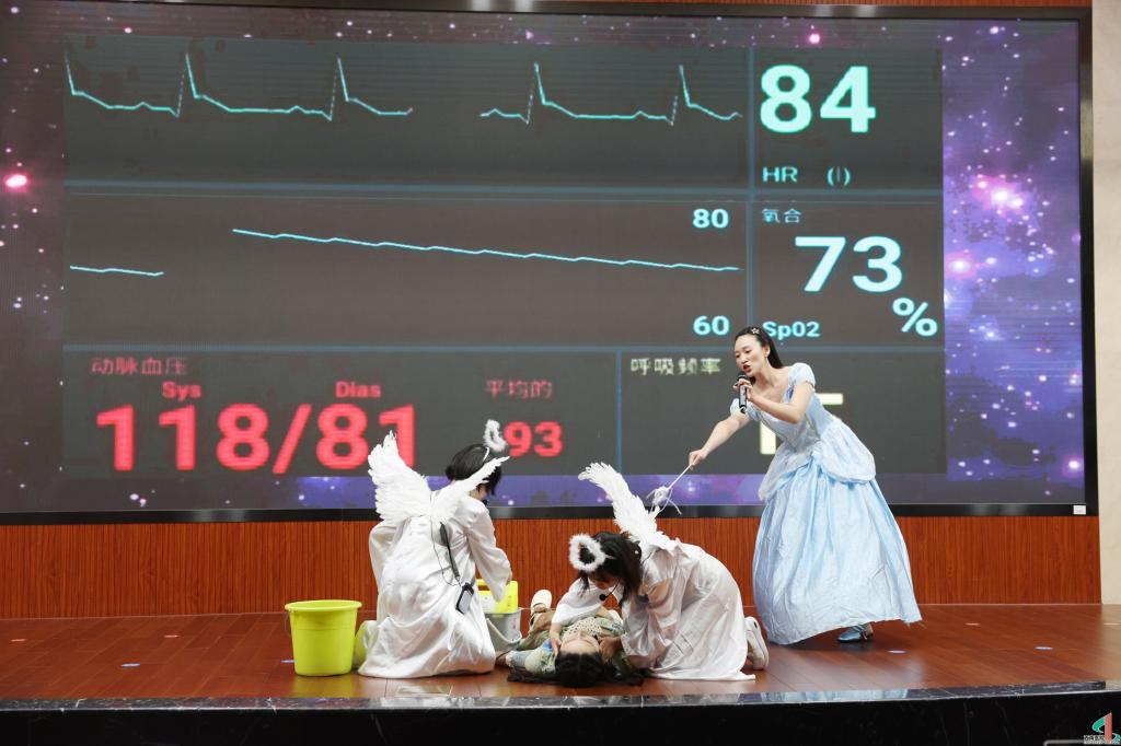 选手全程以流利英文进行演讲与表演,内容聚焦临床实践,融合医学知识与人文关怀,呈现多元视角:普通外科雒培琳、白思义以《Knowledge Without Boundaries:The Temperature of HIPEC》为题,系统阐述腹腔热灌注化疗(HIPEC)技术原理、疗效、护理操作要点及国际推广价值;心血管内科叶菡组围绕《Cinderella's heartbreak spell》,以童话形式讲述患者“辛迪”因劳累突发心梗,通过急救(CPR、除颤)及导管室介入治疗获救的故事,普及心梗急救知识。烧伤科黄凌峰组通过《Hope in the fire:The moment of turnaround》,再现大面积烧伤患者在ICU首次使用翻身床时的身心危机,展现了护理团队通过耐心安抚与协作成功化解烧伤患者抗拒的过程,凸显烧伤科护士的职业魅力。其余选手通过情景剧、叙事演讲等形式,从临床护理不同视角选题生动诠释专业内涵。