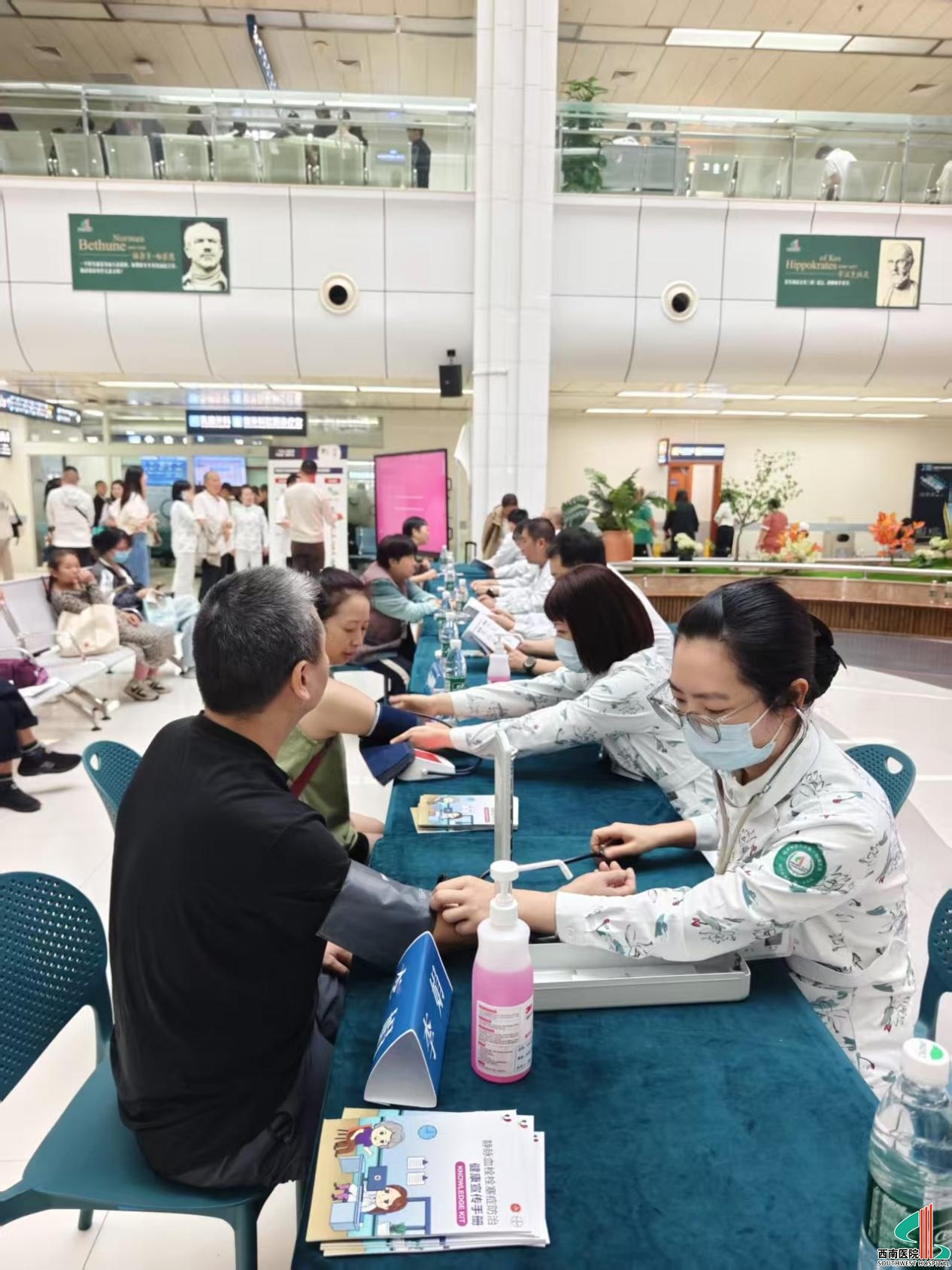 10月13日,正值“世界血栓日”来临之际,我院血管外科在门诊二楼隆重举行了主题为“关注血栓,守护生命”的大型义诊活动。这是血管外科连续第八年组织并开展此项公益活动,充分体现了科室对公众健康的高度责任感和对血栓防治事业的持续关注。本次活动由血管外科主任郝迎学教授主持,科室10余名医护人员积极参与,为现场100余名患者及家属提供了专业、细致的义诊服务和健康宣教,取得了良好的社会反响。