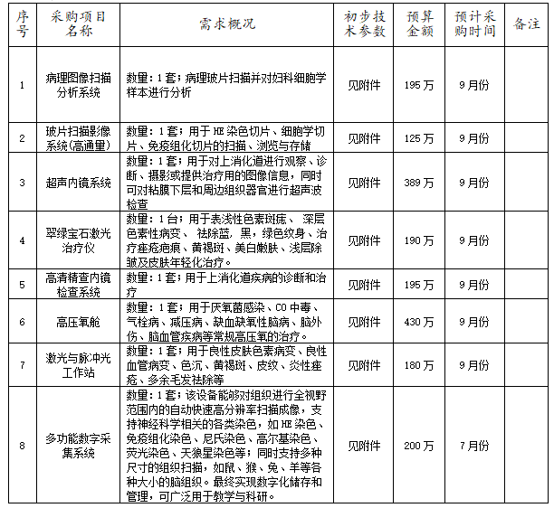 为便于供应商了解采购信息,根据《物资服务集中采购需求管理暂行办法》等有关规定,现将我院的医疗设备项目采购意向公开如下: